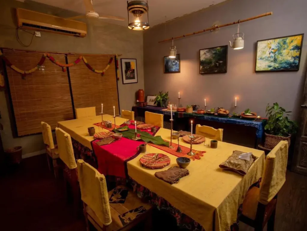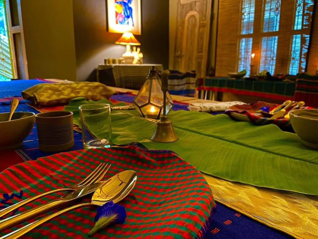 The moment you step into Faiza Ahmed’s studio, the air carries the faint, meditative scent of agarbati. The space feels less like a workplace and more like a sanctuary. A pillow embroidered with Casablanca rests on a chair, while handwoven cotton sarees drape across the walls like art. In the next room, a long wooden table stands ready for guests who come to savor vegan meals under her label Sanchayita, a home-based dining club that has become one of her boldest ventures. On social media, she shares these flavors with warmth and conviction—sometimes a hearty curry, other times a jar of handmade pickles.