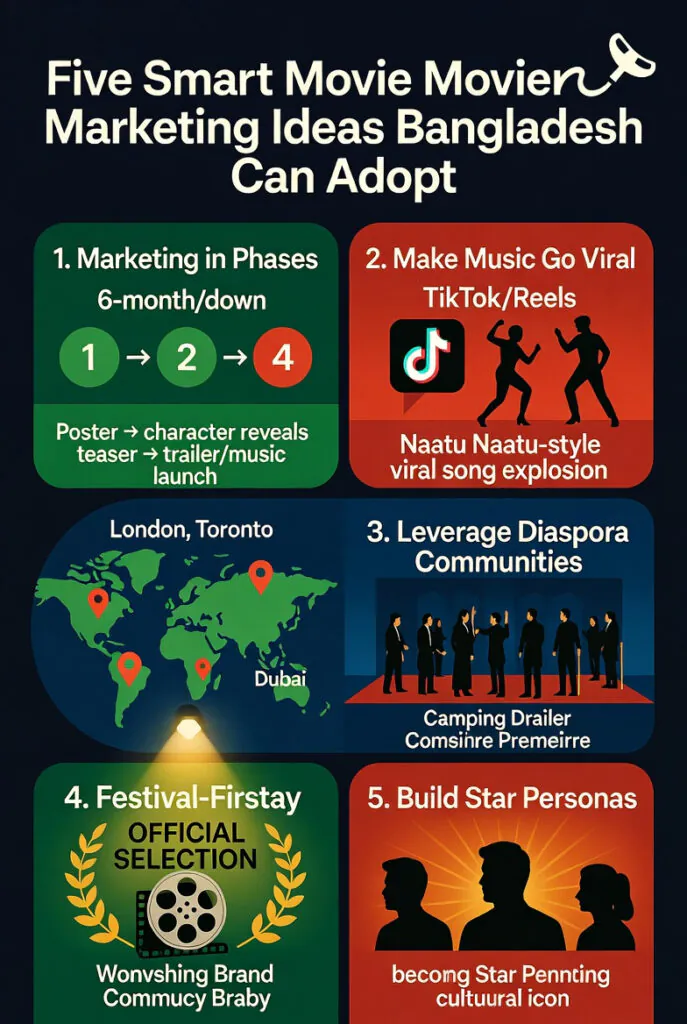 Millions of Bangladeshis live abroad. Special premieres in London, Toronto, or Dubai can generate international buzz.